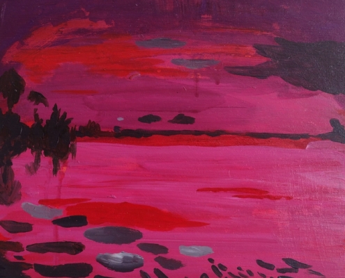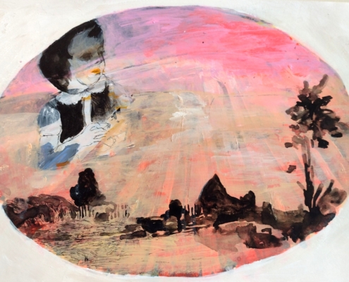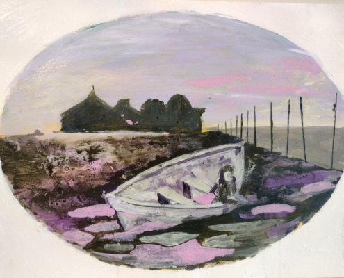 Artista visual, Claudia Flores é uma artista brasileira, que vive e trabalha na cidade de Porto Alegre. Por meio da pintura, do desenho e da colagem, aborda temas como memória, sonho e fantasia. Suas paisagens, construídas em um diálogo entre o figurativo e o abstrato, evocam um universo onírico habitado, em alguns casos, por figuras humanas, animais, barcos, bibelôs e edificações. Com suas formas muitas vezes indefinidas e um jogo entre gestos deliberados e acasos do próprio processo pictórico, a artista convida o espectador a uma experiência contemplativa, abrindo espaço para que ele complete as narrativas visuais com sua própria imaginação.